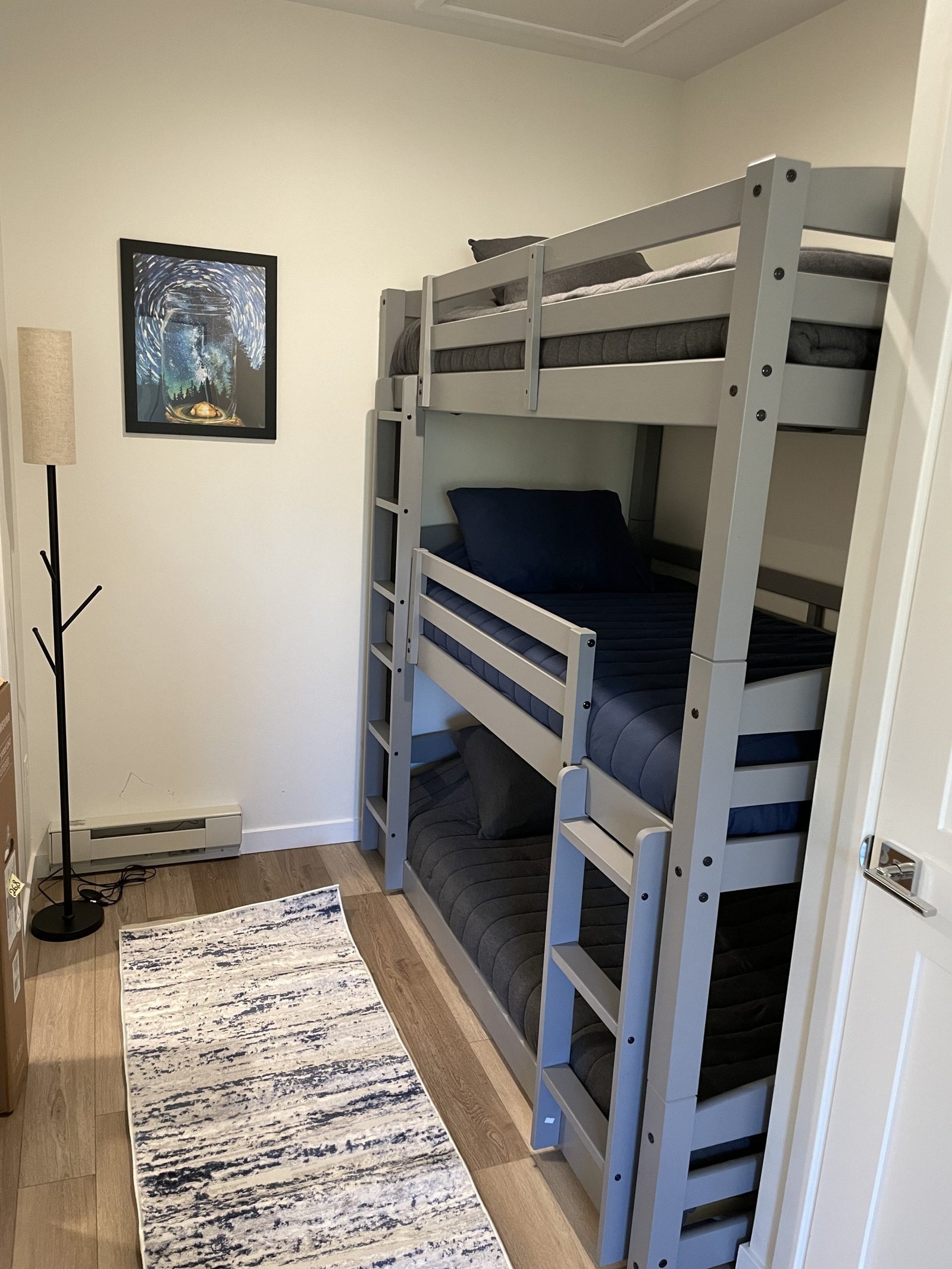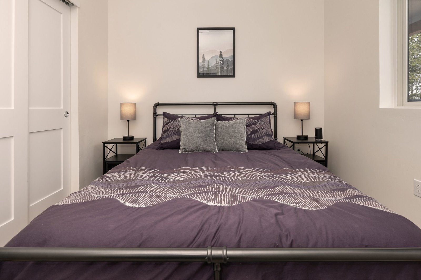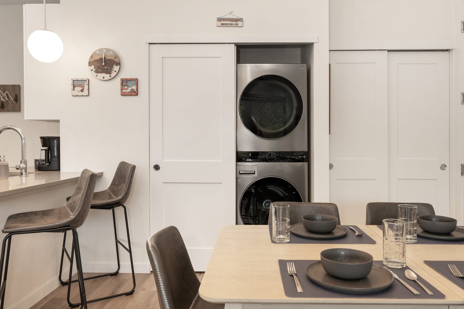 Enjoy modern luxury and rustic charm in our new residence in the heart of the mountains. Perfect for families, adventurers, and those seeking a serene mountain escape. The primary suite has a king bed and en-suite 3/4 bath. The queen bedroom is perfect for quiet reflections. The bunk area is equipped with three cozy bunks, perfect for our younger adventure seekers, giving them their own dedicated space to reflect on the memories of their day.