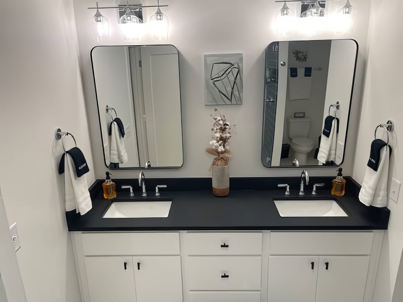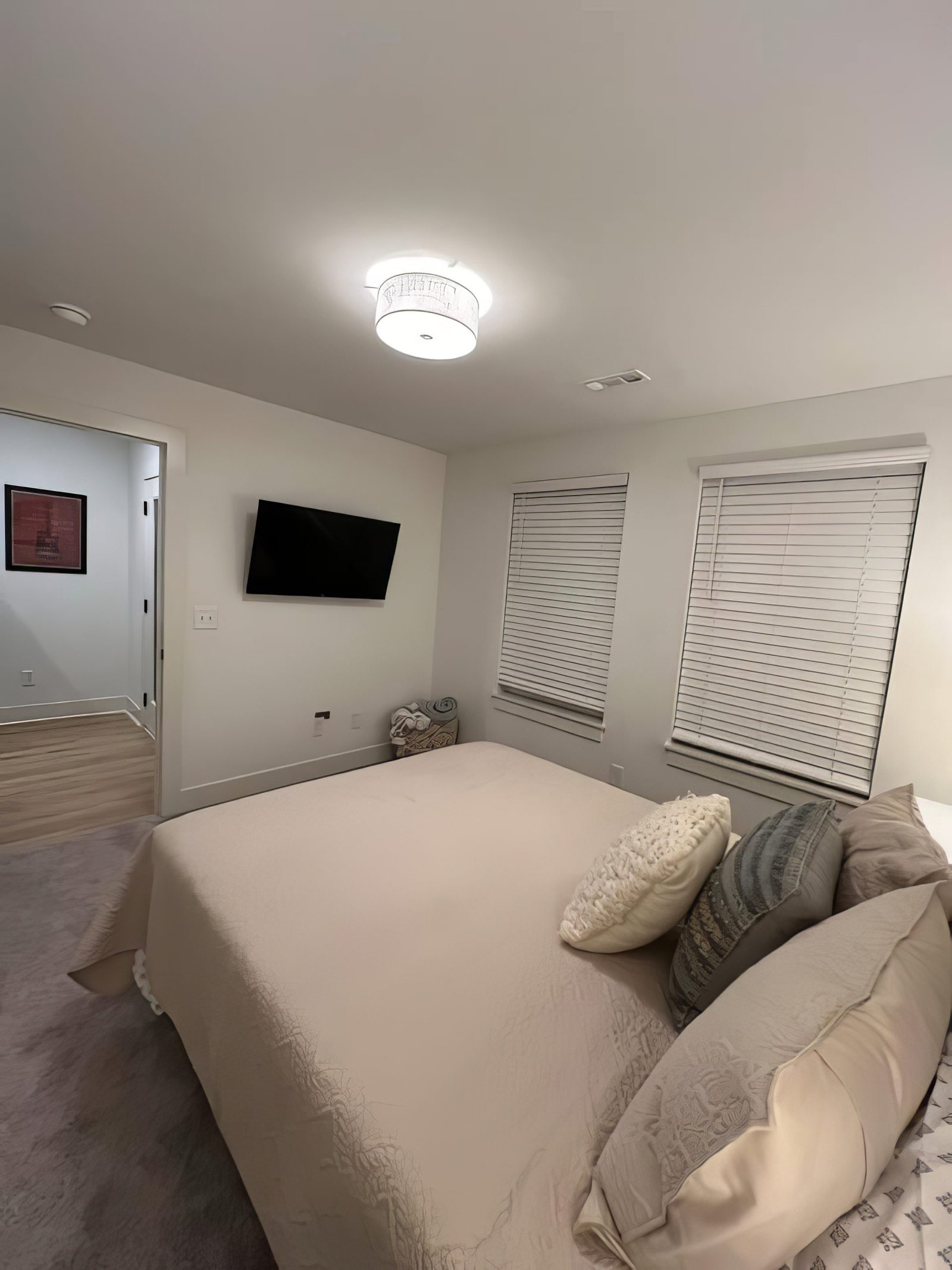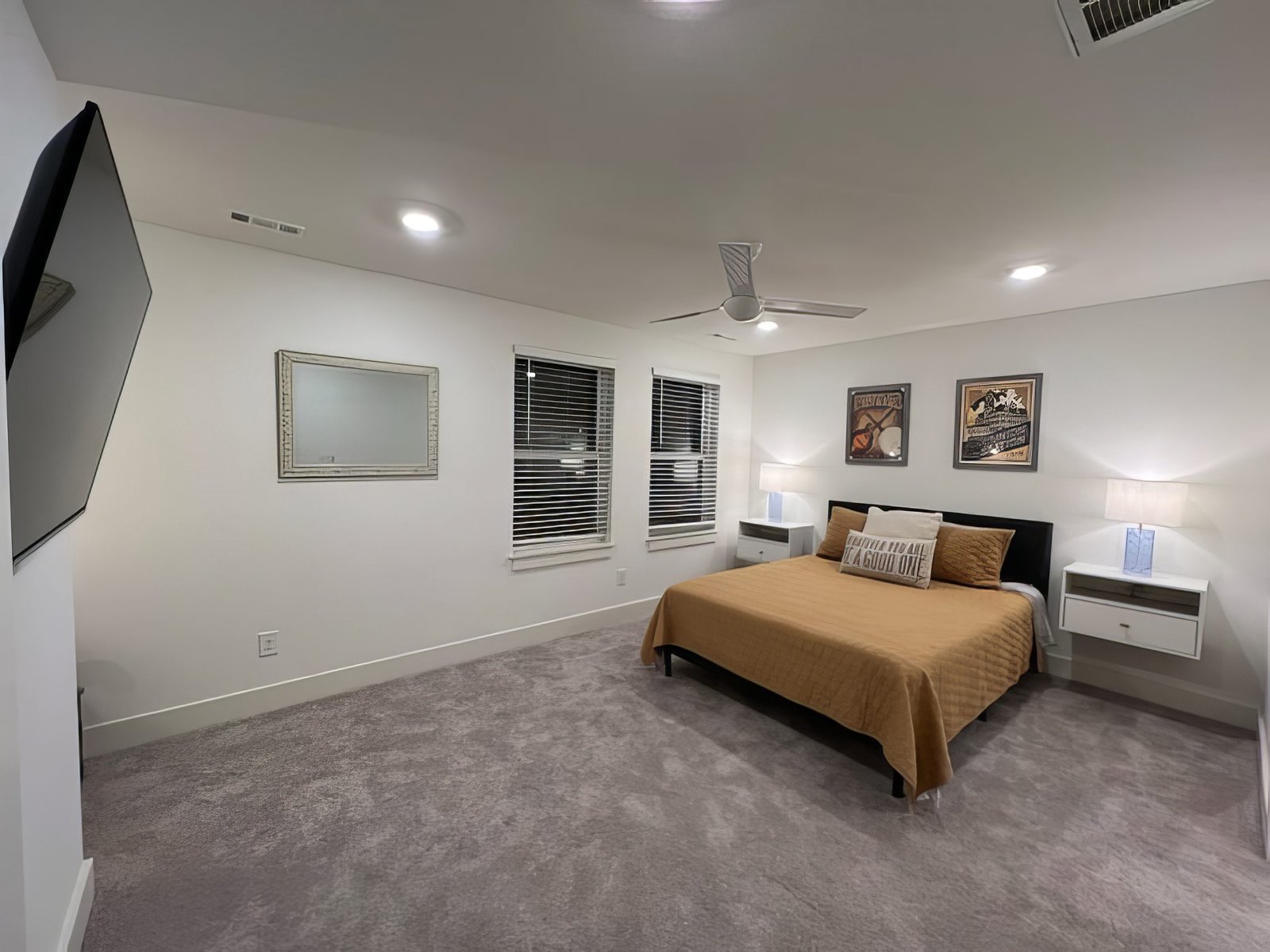 On the third floor unwind in your safe haven – at the top of the stairs find two queen bedrooms with jack& jill shower. Down the hall there is a primary suite that encourages tranquility with a neutral color palette and plenty of natural light. The ensuite bathroom invites you inside to experience luxurious features and modern finishes, perfect for a rejuvenating escape. Every bedroom is complete with a TV for entertainment.