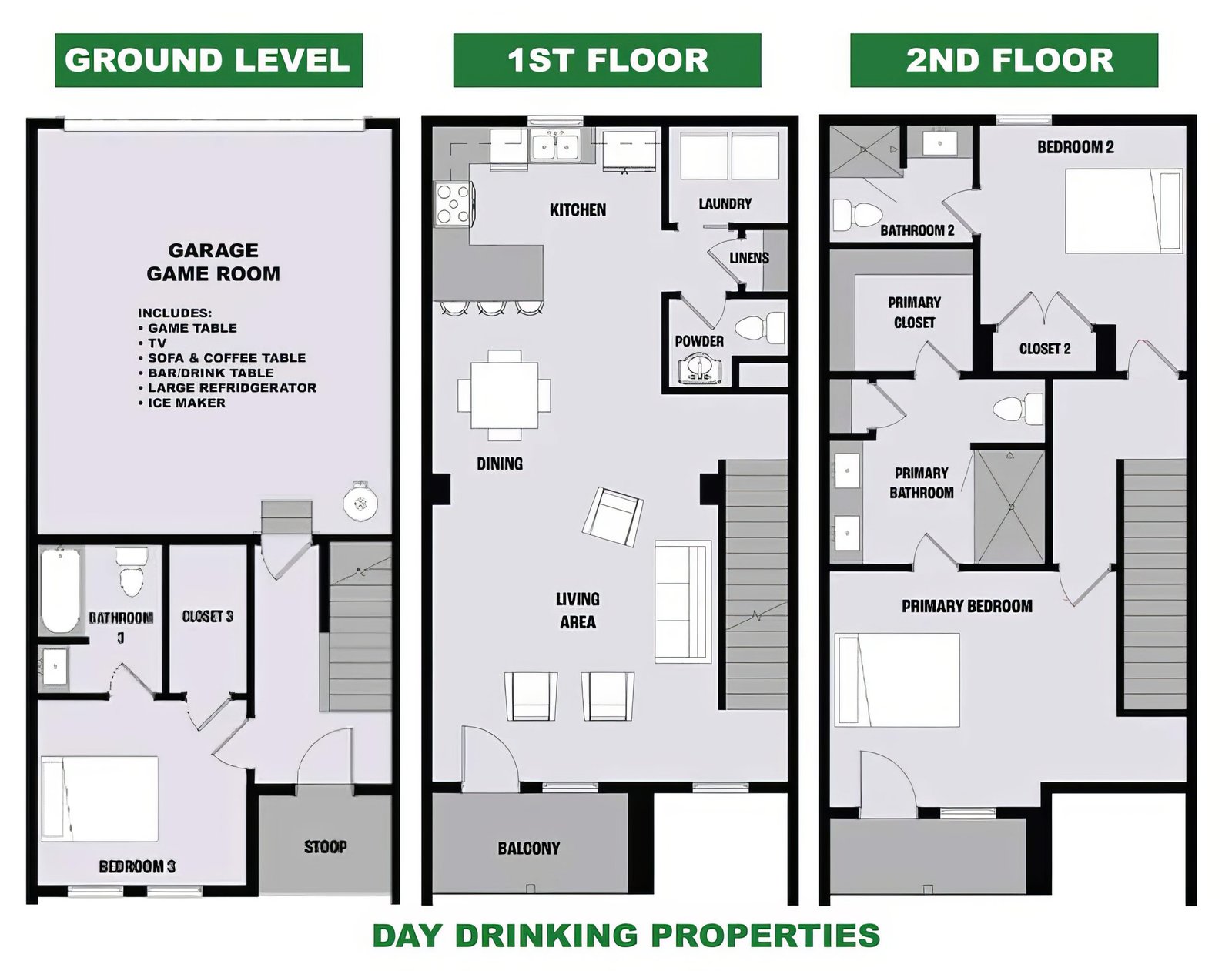 This 3-story home is designed for both comfort and flexibility. First floor has a queen bedroom and full bath as well as entry into the game room with large refrigerator for entertaining. The second floor is primed for family living and entertaining, feel at ease by the open and spacious family living area flowing seamlessly into the gourmet kitchen. The bold kitchen featuring chic fixtures and sophisticated cabinetry is more than a space to cook; it’s a place to create, gather, and make memories. Enjoy the fresh air with balcony space conveniently off of the living room. To help keep life organized, you will find a laundry room on the second floor as well with a half bath.