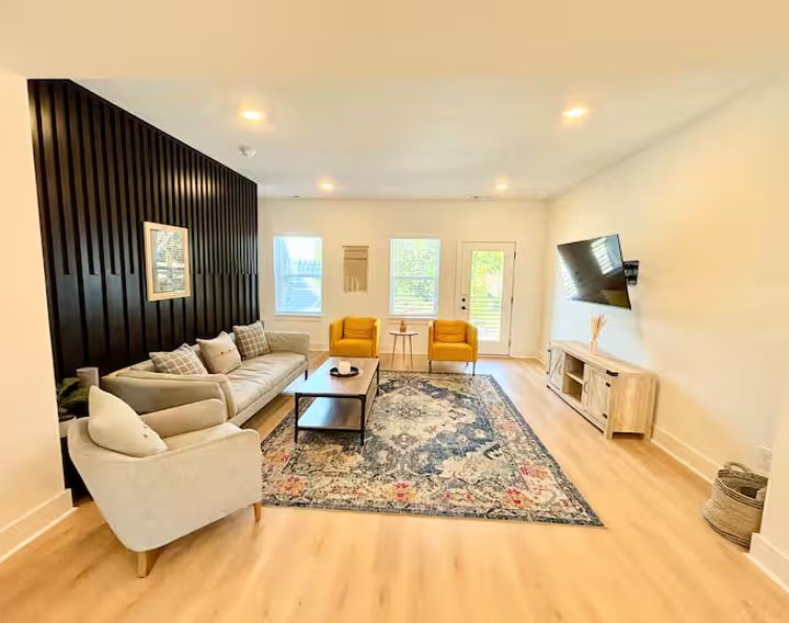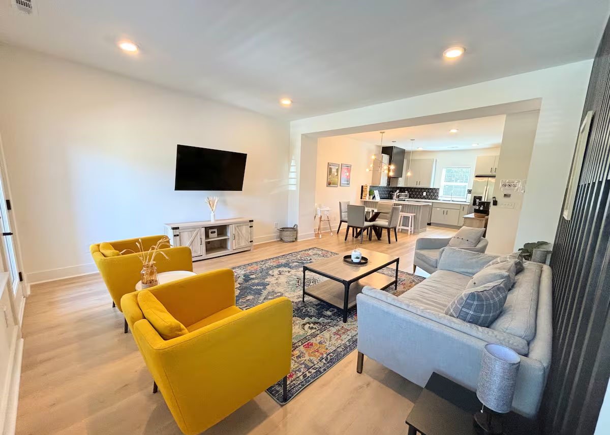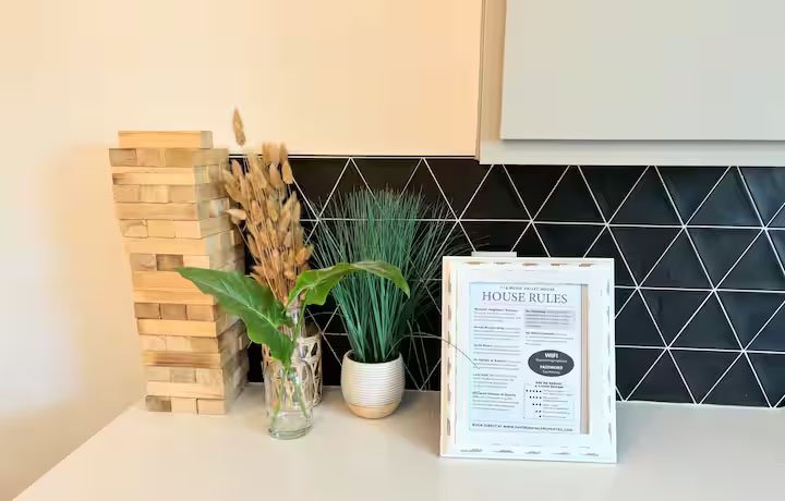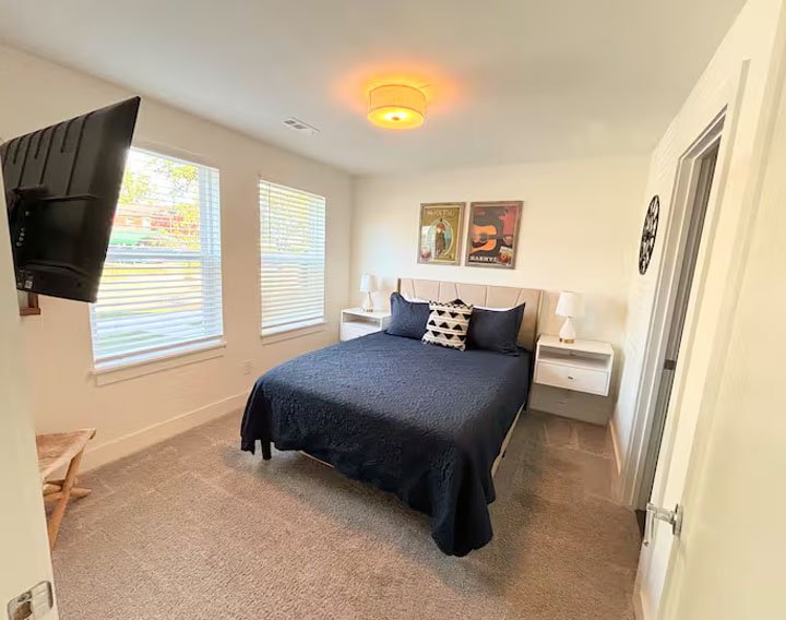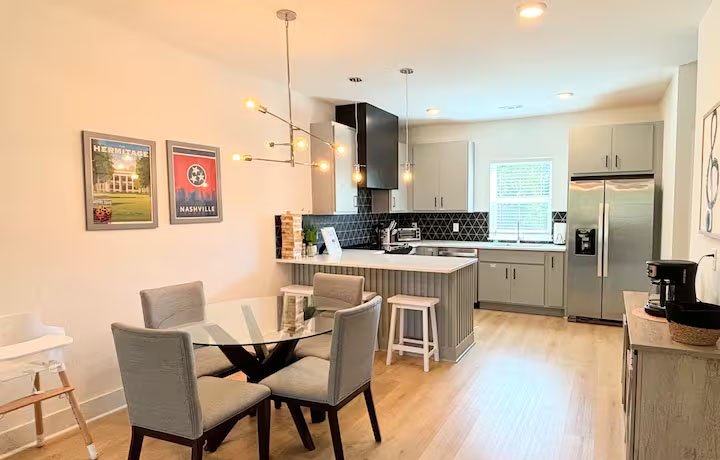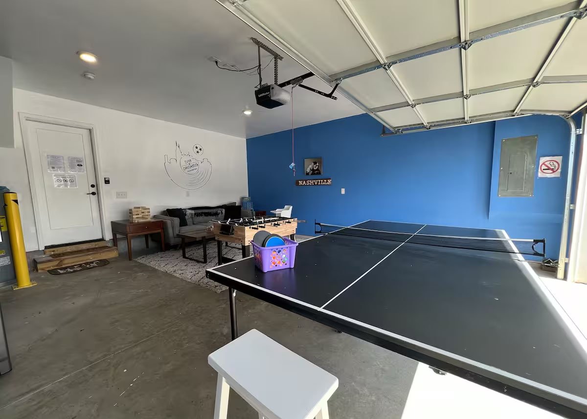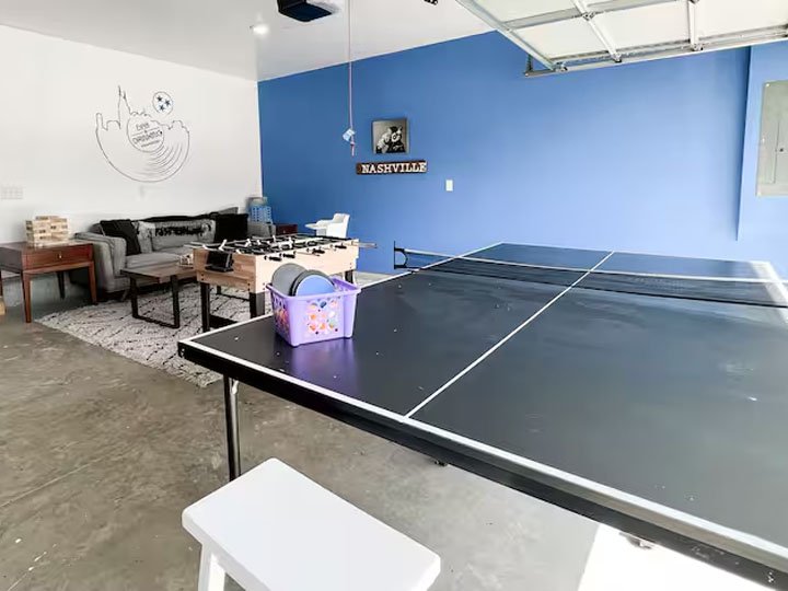 NEW HOME – Welcome to our Nashville Airbnb, a delightful retreat nestled in the heart of Music City! This cozy haven is strategically located just 10 minutes away from the airport and a short drive to the vibrant Downtown and Broadway areas, ensuring you have easy access to the city’s pulsating energy. Public transportation options, including a bus to Downtown and the Music City Star Commuter Rail, are conveniently available. The space is thoughtfully designed with your comfort in mind – it’s sanitized for your safety, family-friendly, and even welcomes your furry companions. The amenities include a washer and dryer for your convenience, high-speed WiFi to keep you connected, and a fully equipped kitchen for culinary adventures. With smart TVs, a balcony to soak in the outdoors, tall ceilings adding a touch of grandeur, and a garage game room for entertainment, this Airbnb offers a perfect blend of relaxation and excitement. Whether you’re here for a bachelorette party, a family getaway, or simply to explore Nashville, our Airbnb provides the ideal home base for an unforgettable experience. Book your stay now and immerse yourself in the charm and rhythm of Nashville!