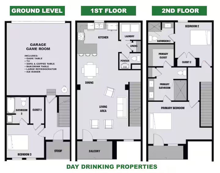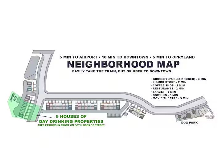 Is available at all Day Drinking Property homes. Tons of parking is available at this property. This is a NEW neighborhood and the homes currently have “No Construction Parking” signs in front. You CAN park there. Signs are to keep construction equipment and workers building new homes in the community from using our spaces.