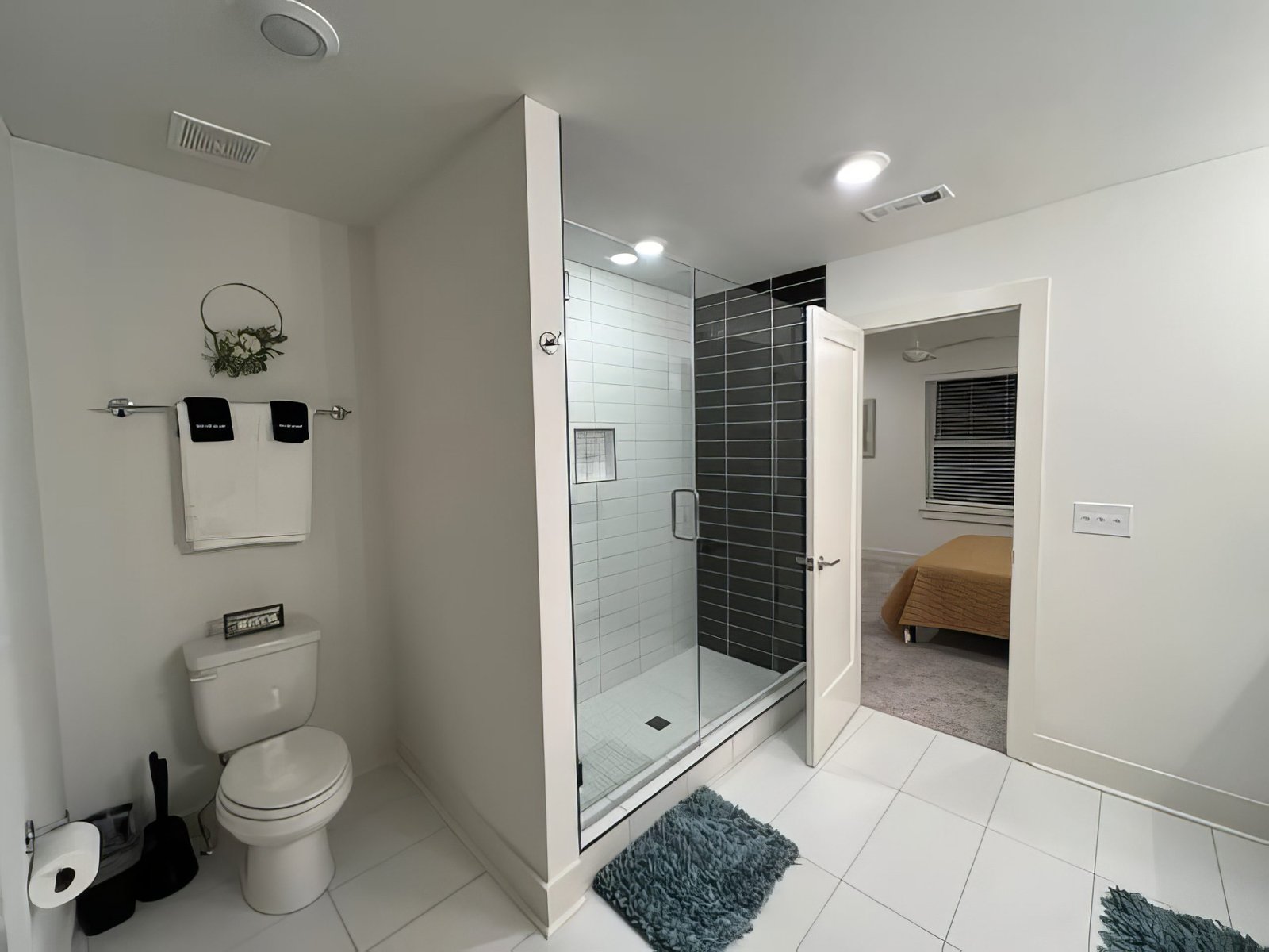On the third floor unwind in your safe haven – at the top of the stairs find two queen bedrooms with jack& jill shower. Down the hall there is a primary suite that encourages tranquility with a neutral color palette and plenty of natural light. The ensuite bathroom invites you inside to experience luxurious features and modern finishes, perfect for a rejuvenating escape. Every bedroom is complete with a TV for entertainment.